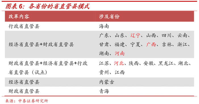 此外,部分省份省直管县制度涉及调整或取消,主要有辽宁、广西、河北和河南。