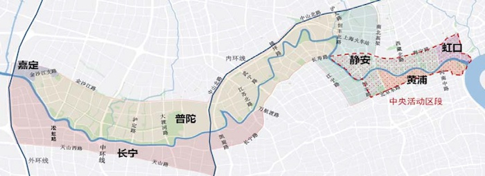 苏州河中心段范围图。资料来源:《苏州河沿岸地区建设规划(2018-2035)公众版》