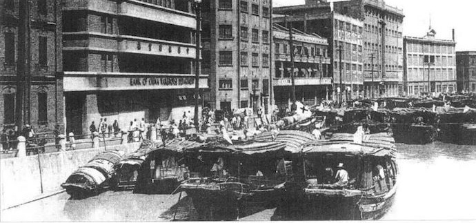 老垃圾桥(今西藏路桥)和新垃圾桥(今浙江路桥)之间的苏州河北岸,集中了众多大型仓栈。 上海发布 图