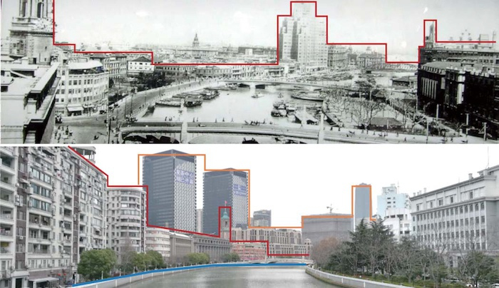苏州河河口经典画面历史景象与现状景象比较。资料来源:《苏州河沿岸地区建设规划(2018-2035)公众版》