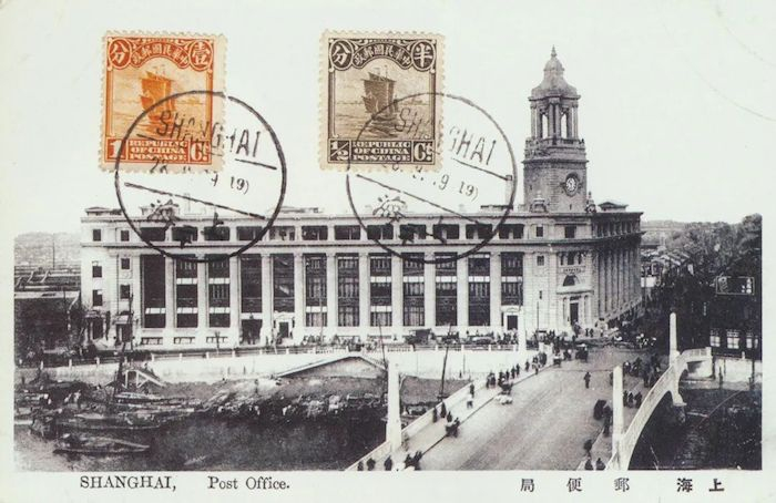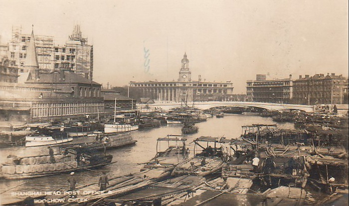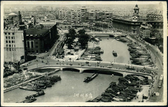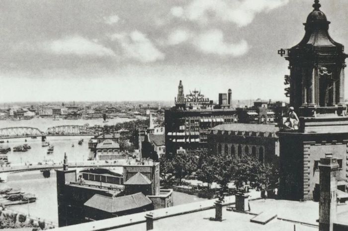 从邮政总局楼顶俯瞰苏州河、黄浦江。