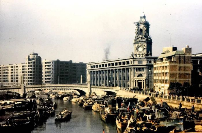 1955年9月16日黑白风景明信片上海苏州河图。泓盛资料图