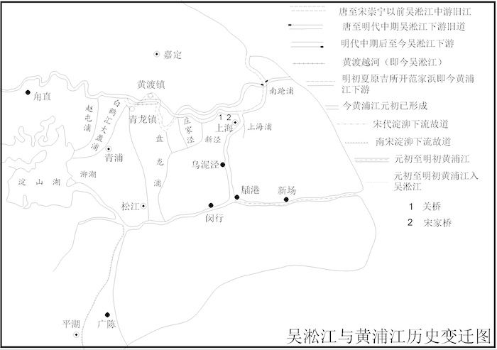 明永乐二年(1404年),随着上海海岸线不断东移,海口与青口港的距离越来越远,吴淞江延伸段常常湮塞,户部尚书征召民工兴建吴淞江下游江浦合流工程,疏通今陆家嘴至复兴岛的黄浦江段,使东江水道的下游由东西流向改为南北流向。吴淞江下游汇入黄浦江,流向东海。黄浦江成为上海第一大河。