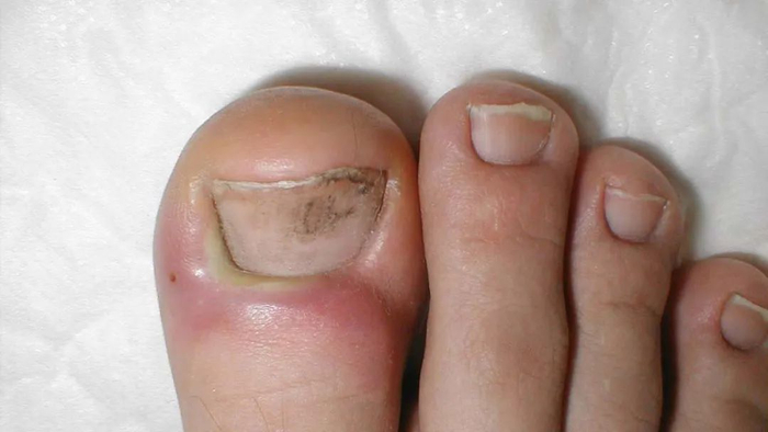 嵌甲症患者,趾甲横向生长,严重者向下方卷曲,犁入皮肉,容易造成脚趾局部反复红肿疼痛,引发甲沟炎。修剪趾甲不当只是诱因,嵌甲症发生的本质主要还是与甲基质(位于趾/指甲后方,负责甲生长)的解剖结构有关。另外,不适当的趾甲修剪只能获得一时的轻松,之后可能会愈加严重。