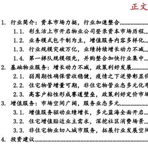 今年国务院《政府工作报告发布》再次提及社区服务,进一步强调促进物业管理企业拓展增值服务。受益标的:(1)背靠龙头房企、储备面积增长确定性强、多业态拓展先驱的碧桂园服务(6098.HK);(2)增值服务高增长、专注项目提质增效的新城悦服务(1755.HK);(3)同时依托中航物业和招商局集团、非住宅业态丰富的招商积余(001914.SZ);(4)聚焦人口大省的中部物管龙头建业新生活(9983.HK);(5)商业物业管理多元化经营开拓者宝龙商业(9909.HK)。