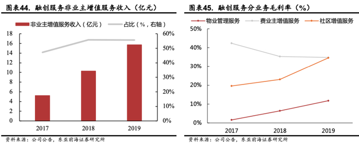 非业主增值服务则更多的与开发商地产项目相关,目前集中在合作开发商地产开发项目相关的协销服务、额外定制服务、前期规划及设计服务等服务,对于巩固客户基础、提升品牌张力以服务于市场拓展具有重要意义。以融创服务为例,非业主增值服务喧宾夺主,撑起了营业收入的半边天,助力公司港股上市。