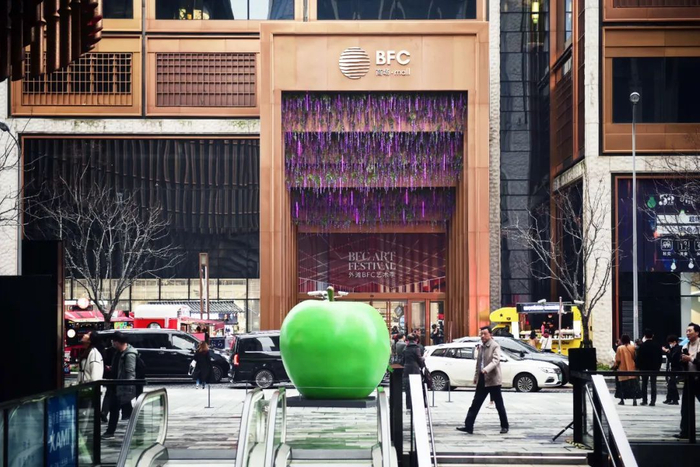 “我刚从BFC的北广场过来,那边有一个非常显眼的青苹果,就是安藤忠雄老师的设计。 这样转角遇到艺术的概念,让我非常感动。“陈白羊兴致冲冲得和我分享了她刚刚和“青苹果“的合影。