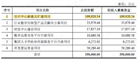 软通动力打算募集35.00亿元,其中约20.00亿元用于“交付中心新建及扩建项目”,另有大约5.93亿元用于补充营运资金,缓解流动性压力。