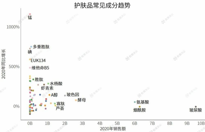 作为护肤成分的烟酰胺,功效非常全面,涵盖了保湿、美白、抗痘、抗衰老和防晒等,也是最普遍的需求。
