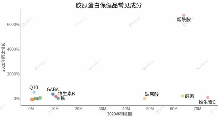 那口服烟酰胺现实吗?冰山君又统计了一下胶原蛋白保健品当中的常见成分,惊讶地发现烟酰胺同样也是明星成分,口服烟酰胺的概念已经有一定基础了。