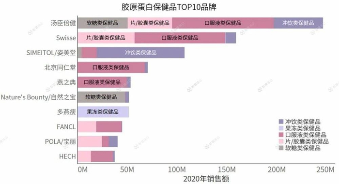 胶原蛋白在保健品这个品类,花样繁多。澳洲保健品大户Swisse,就针对补充胶原蛋白推出了五花八门的产品,口服液、冲饮、果冻、胶原蛋白片,想怎么吃就怎么吃。