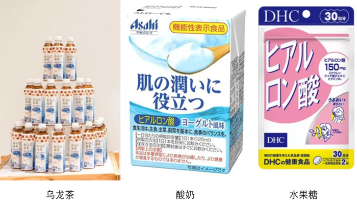 再观邻国日本,市面上已经有大量的玻尿酸食品,包括饮料、乳制品、方便食品、饼干、冷冻饮品、薯类和膨化食品、糖果制品、茶叶及相关制品、酒类、可可及焙烤咖啡产品、糕点等,也点出了玻尿酸食品的未来发展方向。