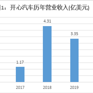 让人诧异的是,开心汽车近几年的营业收入经历了一波脉冲式的过山车轨迹。2016年其营业收入仅为2100万美元,到2018年时迅猛增长至4.31亿美元,2019年跌至3.35亿美元,2020年上半年再暴跌至仅3300万美元(图1)。