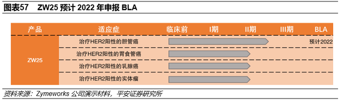 公司与Zymeworks公司就在研HER2靶向双抗药物ZW25和ZW49的开发和商业化达成了战略合作,公司将获得两款药物在亚洲(日本除外)、澳大利亚和新西兰的独家开发和商业化权利。此外,百济神州还获得授权可以利用Zymeworks的Azymetic和EFECT平台针对至多三种其他双特异性抗体在全球范围内进行研发及商业化。其中,ZW25是Zymeworks公司开发的一款双特异性抗体,可以同时结合两个非重叠的HER2表位,在乳腺癌和胃癌的临床前模型中展现显著的抗肿瘤活性。全球范围内该款双抗已进入II期临床,国内CDE也于2020年11月16日批准胆道癌临床试验。