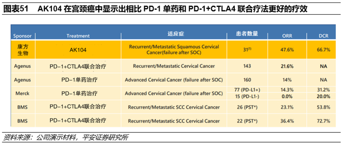 从目前的临床试验结果来看,AK112在PD-1难治或无应答的肿瘤类型中展现出一定疗效,ORR和DCR分别达到23.5%和64.7%。