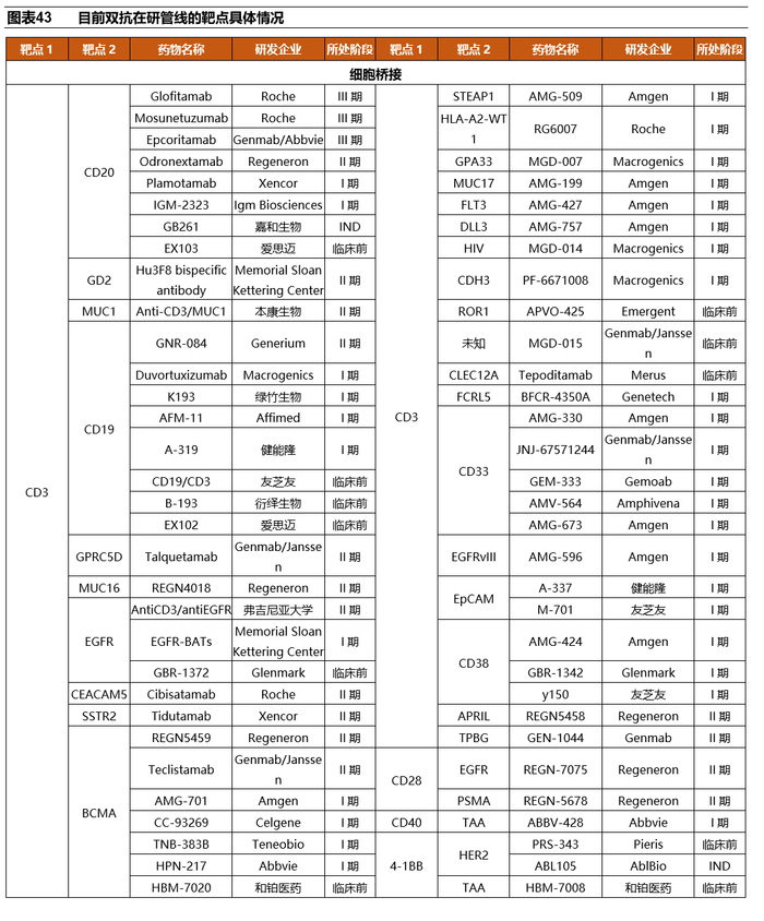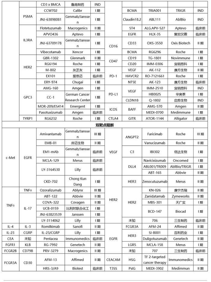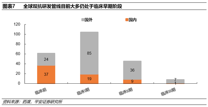 大多双抗药物仍处于早期临床,近年有望迎来收获期