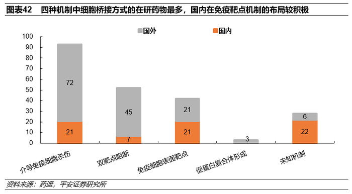 2.2.5 细胞桥接机制最为热门,国内更多布局免疫