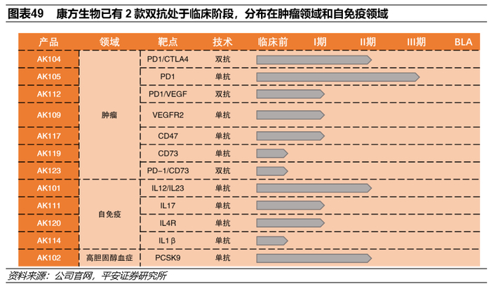 在这些平台的基础上,公司开发了多款双抗药物,其中有3款已经进入III期临床,也将于近两年完成上市申报,将进一步巩固公司在双抗研发方面的领先地位。