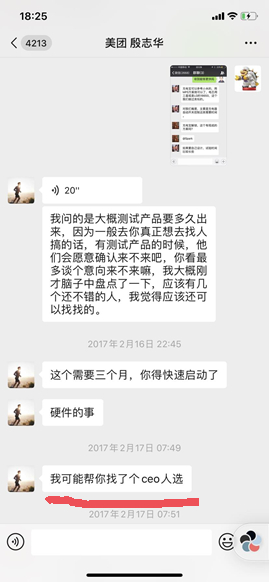 3. 2017年2月16日冯一名找到一个技术公司木盒科技,寻求硬件开发的细节。