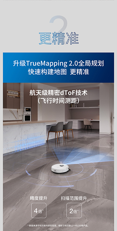 针对这些体验痛点,科沃斯近年来加大攻关克难力度。科沃斯产品负责人介绍到,路径规划、避障能力差、“眼盲”、找不到充电桩,其实主要涉及扫地机器人的导航规划能力和避障能力,从T8系列开始,科沃斯采用了dToF SLAM算法,大幅提升了产品建图导航的能力,可有效解决路径规划不明的问题,且不受光线条件影响;而在避障方面,科沃斯采取了3D结构光技术和人工智能视觉识别两种方案,3D结构光技术可实现毫米级避障,主要解决产品易卡困的痛点;而人工智能视觉识别,则可通过前端摄像头识别障碍物并做出避障决策。