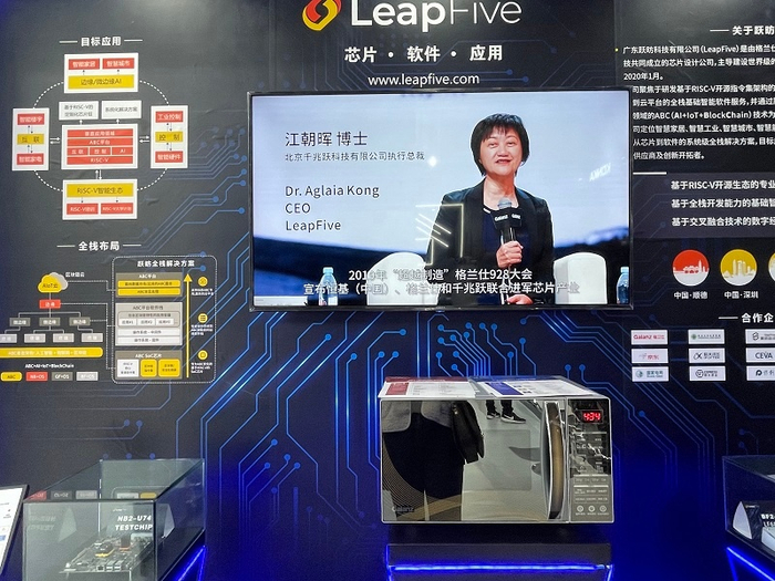 格兰仕展示了2019年发布的两款AIoT家电芯片——BF-细滘、NB-狮山,这两款芯片都采用了RISC-V架构,将用于格兰仕的家电产品。目前,BF-细滘已经量产使用,芯片设计方跃昉科技由格兰仕、恒基集团、赛昉科技合资成立。跃昉科技负责人告诉中国商报记者,BF-细滘目前可应用在微波炉、电烤箱、冰箱、空调等多个智能家电产品中,其特点之一就是超低功耗。他透露,NB-狮山预计会在今年第三季度落地应用。