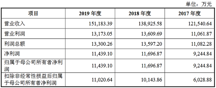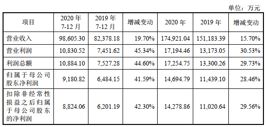 招股书显示,2016年至2020年,同力日升实现营业收入分别为11.03亿元、12.15亿元、13.89亿元、15.12亿元、17.49亿元;实现净利润分别为1.00亿元、9244.84万元、1.17亿元、1.14亿元、1.47亿元。