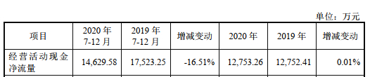 同力日升经营活动产生的现金流量净额波动较大,且与净利润不匹配。2018年,同力日升在净利润同比增长26.5%至1.17亿元的前提下,经营现金流从前一年的2亿元降至1亿元;2019年净利润虽下滑,经营现金流却有所上升;2020年净利润同比增长28.46%,而经营现金流仅增长0.01%。。