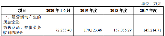 2016年至2020年1-6月,同力日升销售商品、提供劳务收到的现金分别为13.44亿元、14.52亿元、15.70亿元、17.01亿元、7.23亿元。
