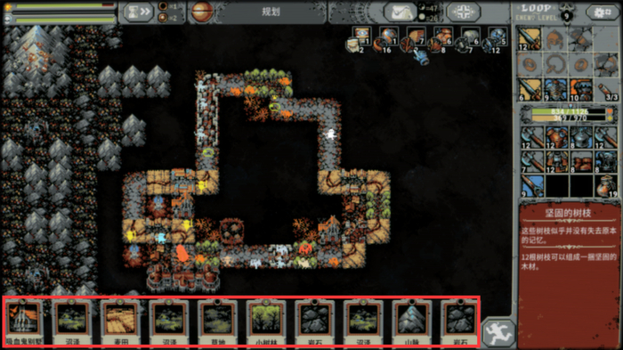 《Loop Hero》是一款绕圈子走路的roguelite游戏。主角会自动沿着环形路行走,在每一圈中与变得越来越强大、狡猾的怪物战斗。玩家不直接控制主角,而是需要搭建建筑并武装角色,让他有机会坚持到下一圈。