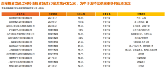 在IP和开发商投资方面,中手游也持续保持积极态势。2020年,中手游新投资多家手游研发商和相关企业,并于公司达成游戏定制开发及代理发行的长期合作。包括投资《少年三国志》、《少年西游记》系列游戏总制作人程良奇所创建的乐府互娱,程良奇也将出任公司首席产品顾问。此外,中手游也投资金牌制作人张福茂创立的寰宇九州,该团队擅长塔防和模拟游戏(SLG)品类;投资了由《太古封魔录》制作人李文东带领的深圳赫耀,双方将在竖版3D大型多人角色扮演游戏(MMORPG)品类合作打造游戏产品。