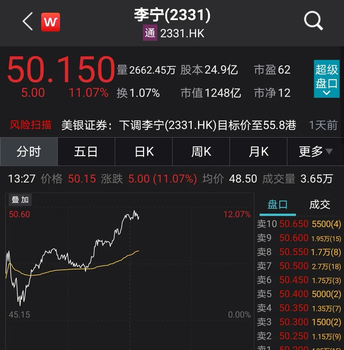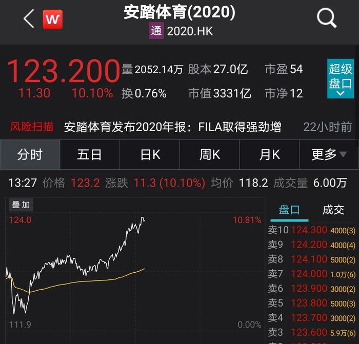 受上述消息影响,港股安踏体育、李宁出现大幅飙升。午后,港股体育用品板块走高,李宁涨超11%,安踏体育涨近10%,特步国际、中国动向、361度跟涨。