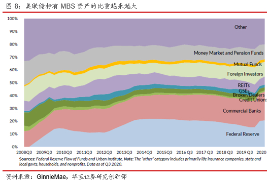 自QE以来,美联储逐步成为MBS市场的主要投资机构,目前美联储持有的机构MBS占比在20%以上,成为MBS市场稳定的重要支柱力量。