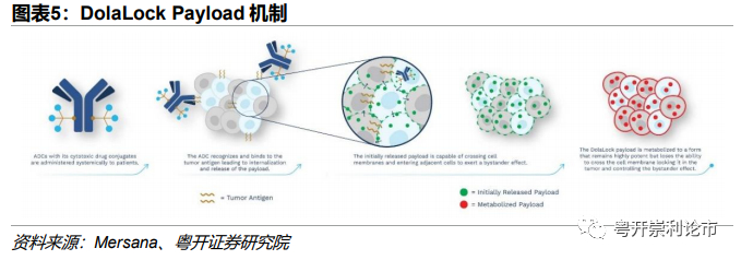 但旁观者效应是一把“双刃剑”。当相邻细胞为癌细胞时,Bystander effect可发挥积极的作用,即实现旁杀伤;但是当相邻细胞为正常细胞时,Bystander effect则会“误杀”。针对这一问题,Mersana公司研发了DolaLock Payload,该payload为Auristatin类衍生物。携带DolaLock Payload的ADC药物进入靶细胞后,ADC在特定条件下裂解,Payload发挥旁观者效应。但DolaLock Payload的旁观者效应仅可持续一段时间,随后Payload代谢为一种依旧高效、但无法跨膜的形式,将Payload“锁”在原靶细胞中,进而有效控制旁观者效应。