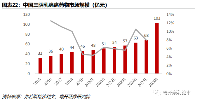 三阴乳腺癌(Triple Negative BreastCancer, TNBC)为一种预后较差的侵袭性癌症,在乳腺癌中占比约15%~20%。由于雌激素受体、孕激素受体和人表皮生长因子受体-2(HER2)三个重要基因表达均为阴性,导致内分泌治疗及抗HER2靶向治疗对其疗效甚微,除了传统化疗以外,其他治疗方案十分有限。在三阴乳腺癌细胞中,由于90%以上的细胞表面糖蛋白均会出现TROP2的高表达,因此,科学家将目光投入Trop2药物的研发,以期治疗TNBC。