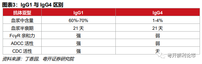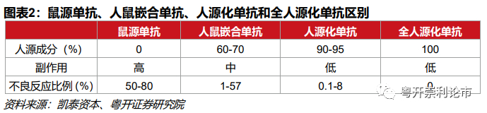 抗体:抗体经历了从鼠源抗体、人鼠嵌合单抗到人源化抗体的转变,逐步克服了人抗鼠抗体反应;IgG1抗体的广泛使用,增强了ADCC和CDC作用;抗体亲和力不断提升,不良反应发生有望下降。