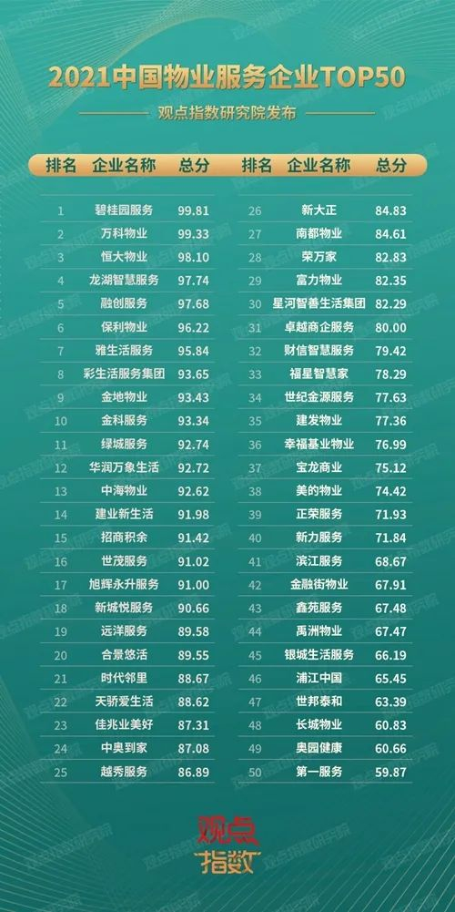 中国物业服务企业TOP50揭晓,碧桂园服务夺冠