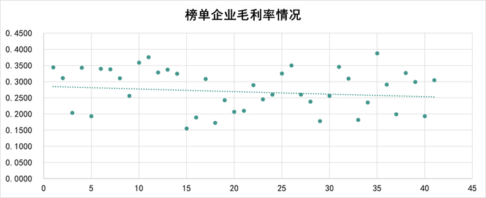 从毛利率角度看,2020年TOP50企业平均毛利率为27.62%。