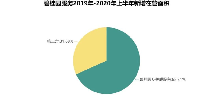 2019年12月31日至2020年6月30日,碧桂园服务新增在管面积4335万平方米,当中来自母公司碧桂园输送的面积约有2961.1万平方米,占比达到68.3%。