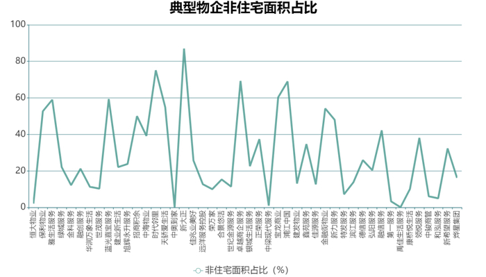 据观点指数整理,目前,典型样本物业服务企业在管面积约22亿平方米,其中非住宅物业在管面积约7亿平方米,占比31.8%,仍有较大的增量空间。