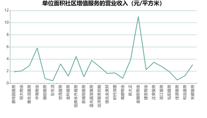 整体来看,物业服务企业由于丰富的社区属性,在管面积规模越大的物业服务企业越有余力发展增值服务,再加上既有的规模优势,增值服务收入也越大,如雅生活、碧桂园服务。