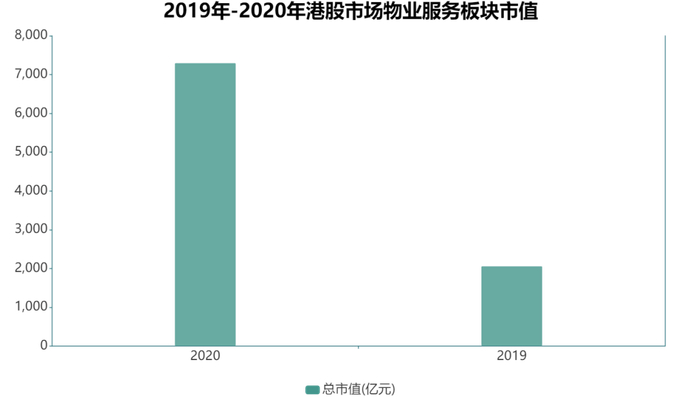市值表现方面,截至2020年12月31日,38家港股物业服务企业的市值为7301.1亿元,而2019年,港股市场物业板块总市值仅2062.86亿元。