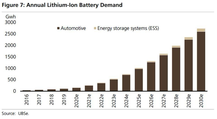 锂电池汽车和锂储电系统将急剧加速锂的消耗