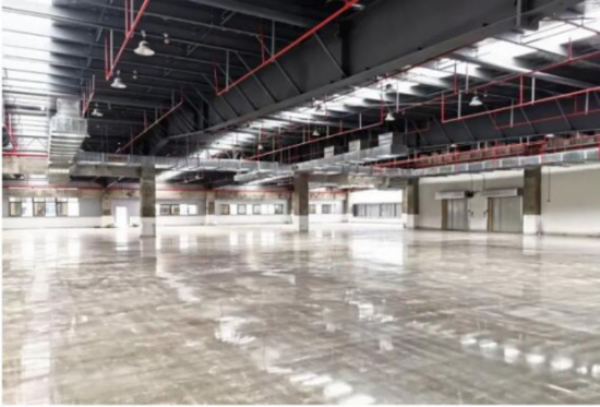 二层为高台库,层高9.2m,地面全部为金刚砂+固化剂耐磨处理,设有11米专用宽坡道,33米库房前停车跨度,各类车辆均可直达二层平台实现自由停靠装卸货;三层层高6.3米,每栋4部电梯,共24部电梯直达一楼分拨平台,可有效提高货物物流运作效率。▲传化中原物流小镇二楼装卸平台效果图