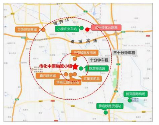 传化中原物流小镇位于郑州市郑新快速路与107国道东南角,为临郑产业集群商贸物流中心核心区域,紧邻华南城、红星美凯龙、华商汇、鑫兴建材城4大商贸批发基地,临近规划小李庄火车站、薛店铁路货运站、郑州机场等, 10分钟上高速,30分钟可达郑州市区,拥有绝佳交通资源优势。
