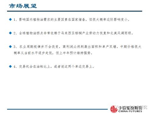 1、多头持棕榈油供应恢复缓慢(新年度供应仅增加300-350万吨)而高增长需求有望持续的观点, “未来全球油脂的趋势依赖棕榈油的库存重建时间,而人力紧缺在何时改善是这一切的关键”。