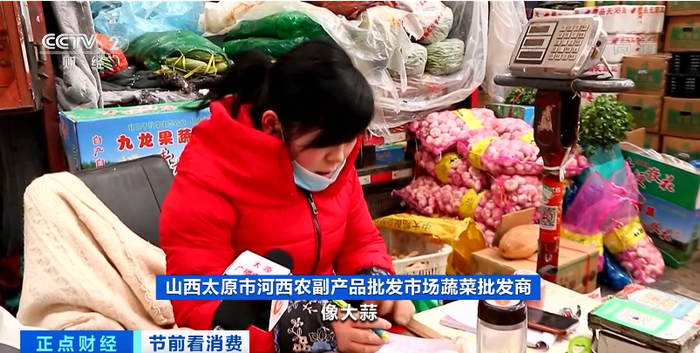 山西太原市河西农副产品批发市场蔬菜批发商:像大蒜,半个月前卖每斤四块,现在卖三块。批发新大蒜直接降了一块钱。西红柿现在批发是一块二三,十天前是一块八。