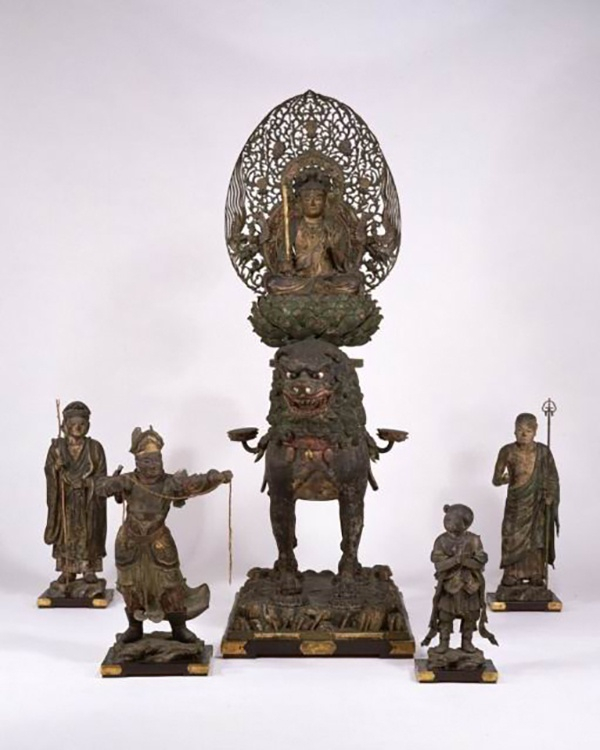 东京国立博物馆藏木造骑狮文殊菩萨及胁侍像(C-1854)