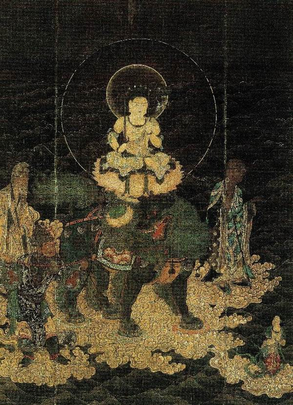 日本京都清凉寺栴檀释迦像胎内藏版画《文殊菩萨骑狮像》与《普贤菩萨骑象像》