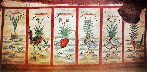 新疆吐鲁番阿斯塔那唐墓壁画花鸟六条屏