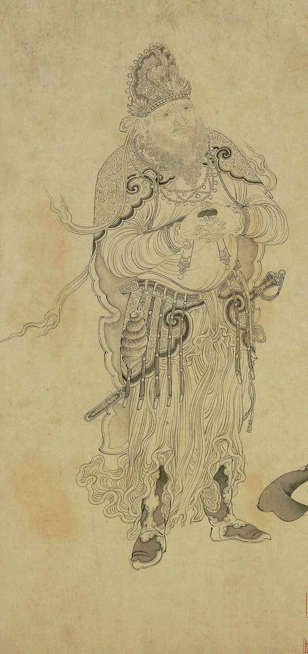 法国国家图书馆藏白描骑狮文殊五尊像P.4049